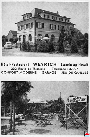![]() Hôtel Weyrich, Howald, 232 route de Thionville, tél: 3707 (Collection: Roland Schumacher) |