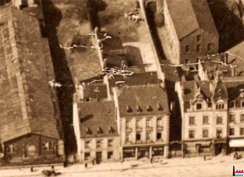 Fabrique Berl - Hôtel de la Station - Hôtel d’Anvers - Hôtel Kons (2 fenêtres) à Luxembourg-Gare (Photo aérienne: U.S.3A.9Sq.C-117 12h, 700 m, 26 cm, 15.3.1919)