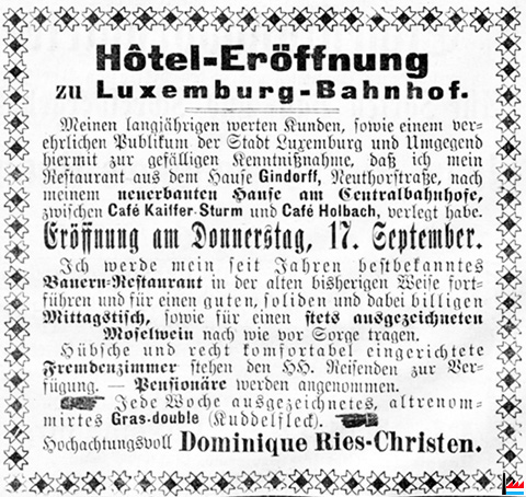 Hôtel Ries-Christen Dominique, Luxemburg-Bahnhof (OMZ: 25.9.1896)
