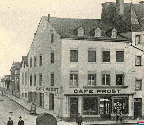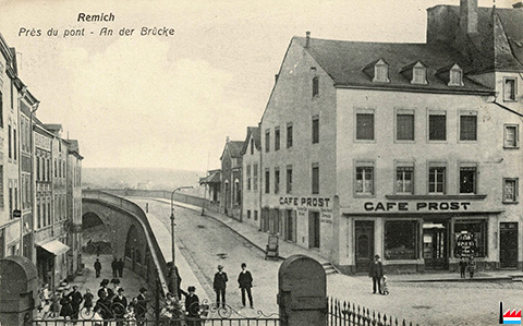 ![]() ![]() <=1883, 1910: Café Prost, Remich (Carte postale: 5475 N. Schumacher, Bad-Mondorf 1910; Collection: industrie.lu) |
