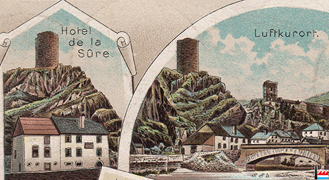 | <=1897 | ![]() Hôtel de la Sûre, Esch/Sauer - 1897 (Auszug aus der Postkarte: Druck und Verlag v. Louis Glaser, Leipzig; Collection: industrie.lu) |