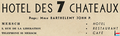 | 1936 | Registre aux firmes N° 11773 - Hôtel des 7 Châteaux, propriétaire : John P. Barthelemy, Mersch, place de l'Etoile, hôtel, café-restaurant. - Du 17 mars 1936. |