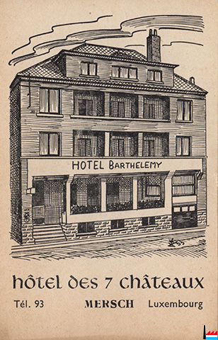 | <=1962 | Hôtel des 7 Châteaux, Mersch Mme John P. Barthelemy 3 rue de la Libération (route d'Arlon), Mersch |