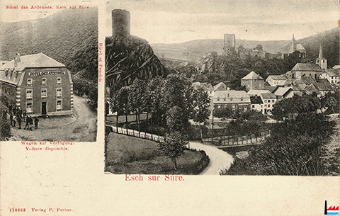 | <=1897 | ![]() Hôtel des Ardennes, Esch/Sauer - 1897 (Auszug aus der Postkarte: Druck und Verlag v. Louis Glaser, Leipzig; Collection: industrie.lu) |
