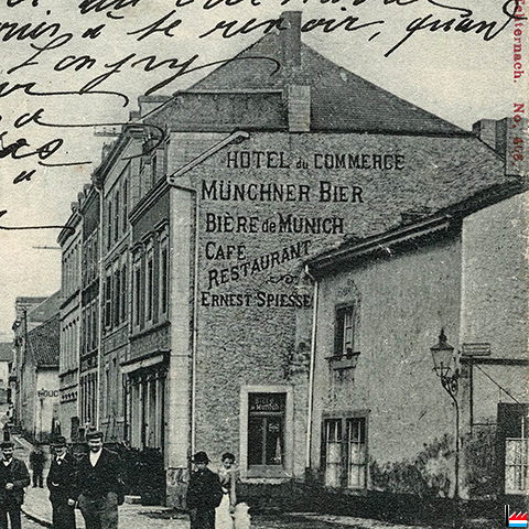 Hôtel du Commerce, Esch/Alzette, Grand'rue Ernest Spiesse (ab 14.7.1907: Hôtel Terminus, Luxembourg-gare) Münchener Bier - Bière de Munich Café - Restaurant |