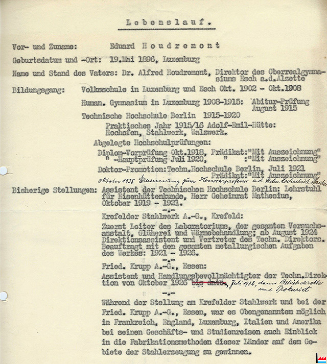 | Source: 1935 - Eduard Houdremont - Lebenslauf - Archives Camille Aschman Jr. |