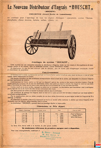 | 1927 | Brevet d'invention N° 15110 - 22 juin 1927 - Jean Houscht à Cruchten Distributeur d'engrais (Mémorial Annexe 14 de 1936) |