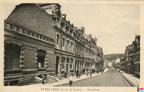 Rumelange, Grand'rue (Carte postale: No. 6 Maison de gros P. Houstraas, Luxembourg & Metz; Collection: industrie.lu)