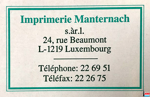 ![]() Imprimerie Manternach, Luxembourg, 24 rue Beaumont (Collection Serge Pletgen) |