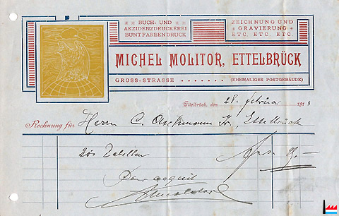 | <=1935 | Imprimerie Michel Molitor, Ettelbruck Tél: 165 |