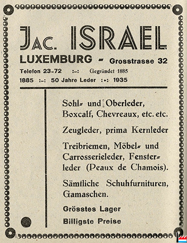 | <=1936 | Jacques Israel, cuirs et peausseries 32 Grand'rue, Luxembourg |