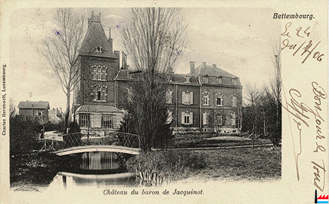 Château du baron de Jacquinot, Bettembourg - vers 1906 (Carte postale: Charles Bernhoeft, Luxembourg; collection: industrie.lu)