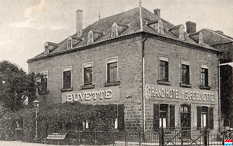 Grand Hôtel de la Gare - Buvette de la Gare, Mersch, 28 rue de Gare - Propriétaire: Thérèse Nickers - vers 1913/1918 (Extrait de la Carte postale: Cartes-vues en gros Jos. Jores, Luxembourg; Collection: industrie.lu)