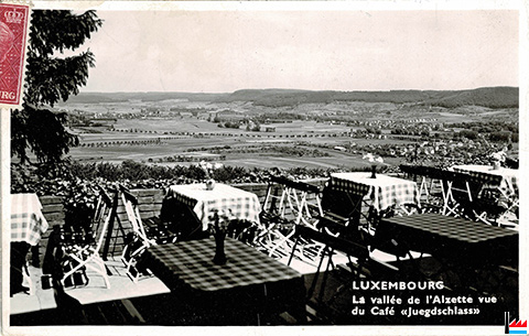 | * 1873 | Pavillon de chasse "Juegdschlass" de Emile Metz (+ 1904) Bau: 10 x 10 m, Eisengerippe Diese Villa wurde erbaut von Herrn Metz, Hüttenherr zu Dommeldingen, und diente noch vor 1912, also zu dessen Lebzeiten (?) bei Gelegenheit der Eröffnung der Jagd zum Empfang der zu Luxemburg wohnenden und zur Jagd eingeladenen fremden Gesandten. Nach dem Ableben der Eheleute Emil Metz ging die Villa in fremden Besitz über. (OMZ: 29.1.1932) |