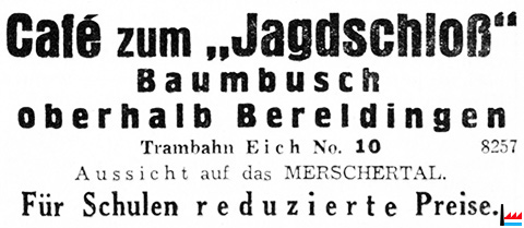 | <=3.1933 | ![]() Café zum Jagdschloss, Eicherbusch (LW: 11.3.1933) täglich geöffnet |