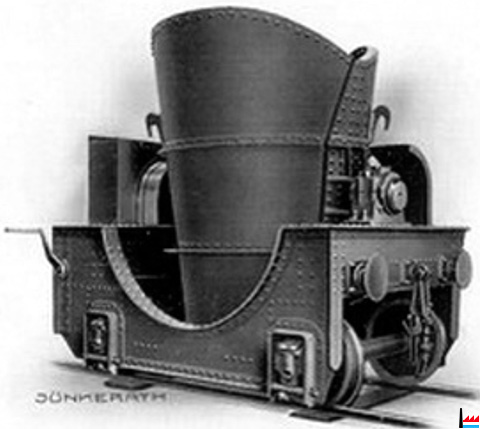 Jünkerather Roheisenpfannenwagen "Longwy" für 12 t Inhalt, normalspurig (Produktkatalog der Jünkerather Gewerkschaft - 1926)