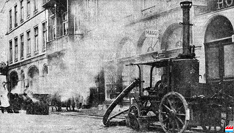 | 1921 | ![]() Piffmaschinn zum Auspumpen der Jauche aus den Zisternen (Kavernen) in eiserne Fässer - 1921 an der Enneschtgaass - rue Notre Dame, Luxemburg - vor dem Hotel Cravat und der Epicerie Jungblut (Photo: Auguste Jungblut) Die Fässer wurden dann zur Piffkaul auf Limpertsberg gebracht, wo sich große Zisternen befanden. Die Gemüsegärtner düngten mit dieser Jauche ihre Gemüsegärten. links im Bild vor dem Geschäft Bernard-Kauffman: rauchende Teerschmelzöfen, zum Ausbessern der Straße |