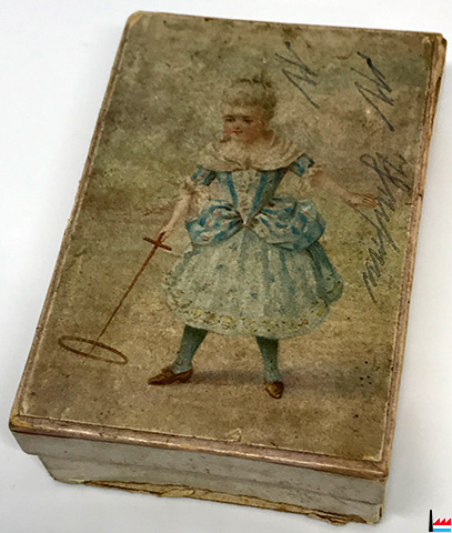 Auguste Kaempff - Juwelier, Gold & Silberarbeiter, Uhrmacher, Luxemburg, Ecke Paradeplatz & Kohlenstrasse. - Kartondose, Durchmesser 55 mm, Höhe 23 mm (Collection Philippe Aschman)