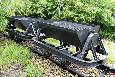 2 Buggien vun der Gipskaul Irthum (Original-Chassis), 1 Buggi aus der Minière vun Godbrange