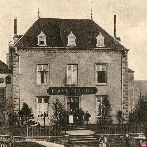 ![]() Café Ludig, Kayl, coin rue de l'Eglise - Kirchenstraße - rue Altrescht <=9.1900 (Carte postale: 19263 N. Schumacher, Mondorf-les-Bains; Collection: industrie.lu) à la gauche: POSTES - TELEGRAPHES, Kayl |