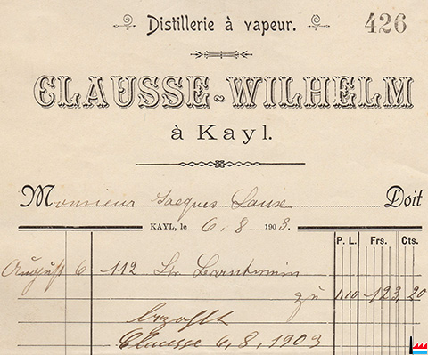 ![]() Distillerie à vapeur Clausse - Wilhelm, Kayl - 1903 (Collection: industrie.lu) |