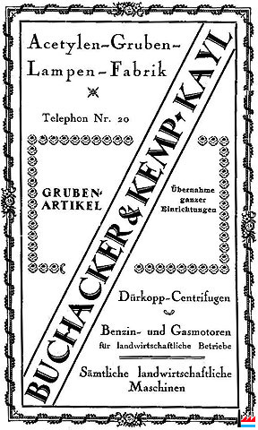 | 1921/22 | Kemp - Sand Jacques, Kayl, fabricant de lampes à acétylène |