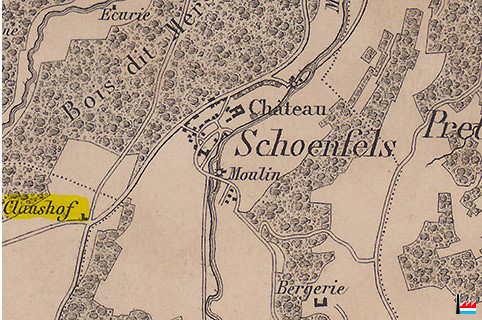 | <=1862 | ![]() Schoenfels (Carte Jean-Baptiste Liesch - 1862) Ecurie Bannmühle Château Moulin (Obere Mühle) Claushof Bergerie |