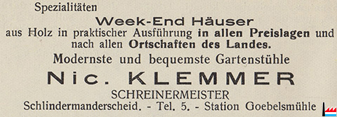| 1948/49 | Klemmer Nic., charron, Schlindermanderscheid Tél: 29-70 Klemmer Jean, menuiserie, Schlindermanderscheid Tél: 29-70 |