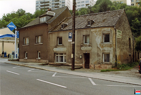Station Aral (Site de la maison Klomp), Maison Weisgerber (N° 167) , Café ("Fixmesch Helen" / Mertens / Ewen / Godart N° 169), Arrêt AVL "Beim Klomp", Rollingergrund - 1998 (Photo: Paul Schmit)