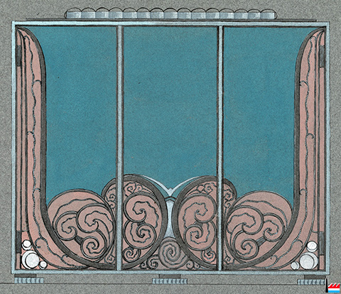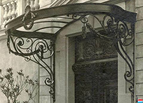 Marquise en fer forgé fabriqué par Atelier de construction et serrurerie d'art Nic. Koch, Luxembourg, 12 avenue Monterey (Photo: P. Kutter, Luxembourg; Collection: koch.lu)