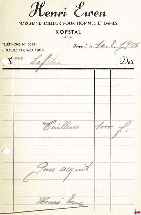 | <=1956 | ![]() Even Henri, Kopstal, tél: 30181, marchand tailleur pour hommes et dames Tailleur: 1.000 fr |
