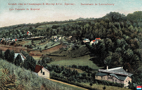![]() Culture de l'osier à Kopstal, servant à faire les paniers à Champagne, appartenant à la Champagne E. Mercier & Cie Epernay, succursale de Luxembourg / Weidenplantage in Kopstal - Weidendall (Collection: industrie.lu) |