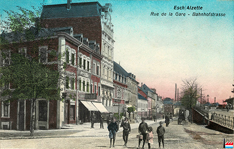 Esch/Alzette, rue de la Gare - <=1910 (Carte postale: 7163 Kremer-Müller, Esch/Alzette; collection: industrie.lu)