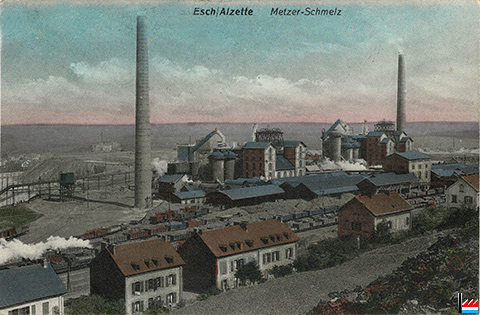 u. Walzwerk um 1913 (Carte postale: Papeterie Kremer-Müller, Esch-Alz.)