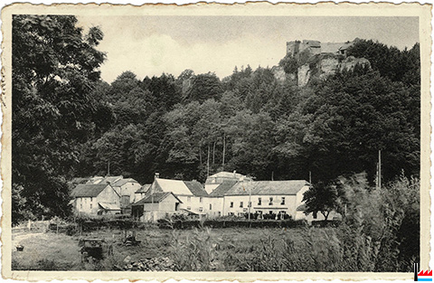 Hôtel du Château, Ansembourg, Prop. M. Heschbourg Prop. Neiertz-Lewen, tél: 30440 (Carte postale: Foto Kremer-Wagner, Koerich; Collection: industrie.lu)