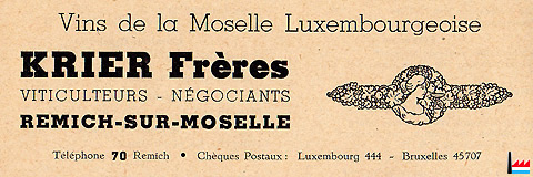 | <=1935 | Krier Frères, anc. Sandt et Krier, Remich, rue de la Gare, Tél. 70 | ||