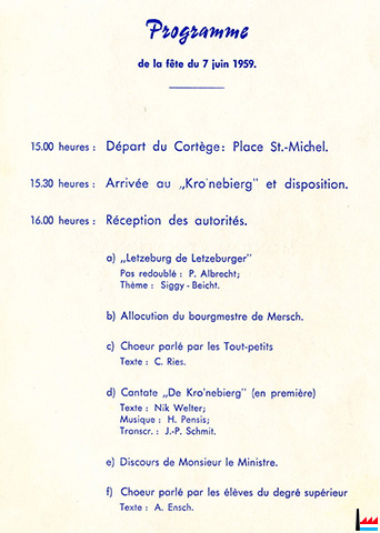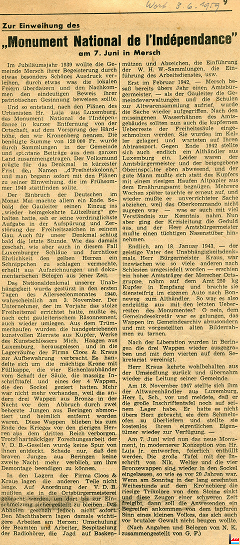 ![]() Inauguration du Monument National de l'Indépendance, à Mersch (LW: 3.6.1959; Scan: Nico Lucas) |
