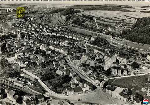 A l'avant plan: viaduc ferroviaire de la ligne Audun-le-Tiche - Fontoy et les ateliers de la Mine Montrouge, Audun-le-Tiche