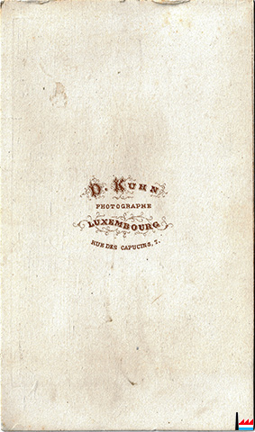 | <=1873 | Kuhn Dominique, Photograph, Capuzinerstr. 7. (In: Luxemburger Wegweiser, Schintgen B., pens. Lehrer, Luxemburg - Druck von Fr. Beffort, Luxemburg, 1873) |