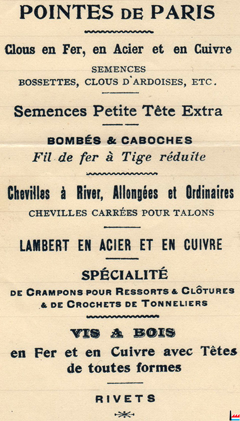 La Fontainoise - Société Anonyme pour la Fabrication des Pointes, Clous et Vis, Fontaine-l'Évêque - 1902 (Extrait d'une facture - collection: industrie.lu)