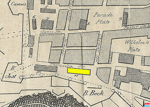 Caserne Marie-Thérèse - Luxembourg - rue Marie-Thérèse (Plan de la Ville et de la Forteresse de Luxembourg, dressé par J.B. Liesch, vérificateur-chef de bureau du Cadastre - 1862)