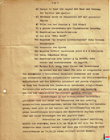 An Herrn V. Bodson, rue du Palais de Justice, Luxemburg (…). Als Referenz der von mir ausgeführten Bauten führe ich unter anderen nachfolgende an:
