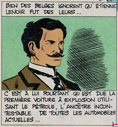 ![]() Etienne Lenoir, né à Mussy-la-Ville, le 12.1.1822, luxembourgeois de naissance, est devenu belge en 1839 (Spirou N° 1657 de 1970; Collection: industrie.lu) |