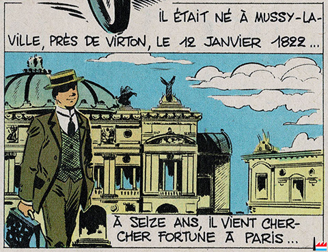 ![]() Etienne Lenoir, part à Paris à l'âge de 16 ans (Spirou N° 1657 de 1970; Collection: industrie.lu) |
