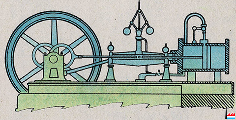 | ~1858 | ![]() Moteur à gaz Lenoir - utilisant le gaz d'éclairage (Spirou N° 1657 de 1970; Collection: industrie.lu) |