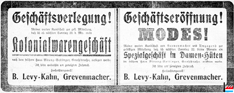 | <22.9.1918 | Kolonialwarengeschäft B. Levy-Kahn, Grevenmacher wou? |