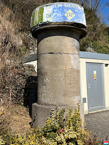 | 11.1951 | Kayl. An der Brücke bei der Bahnüberführung stieß vorgestern gegen 12.30 Uhr mittags ein vollbeladener Lastkraftwagen gegen die dort aufgestellte Litfassäule. Letztere wurde total zertrümmert, während am Lastwagen nur geringer Materialschaden entstand. Der Lastwagenführer war im Begriffe rückwärts zu fahren um seine Ladung am Quai zu kippen, als er auf die Litfassäule aufstieß. (LW: 16.11.1951) |