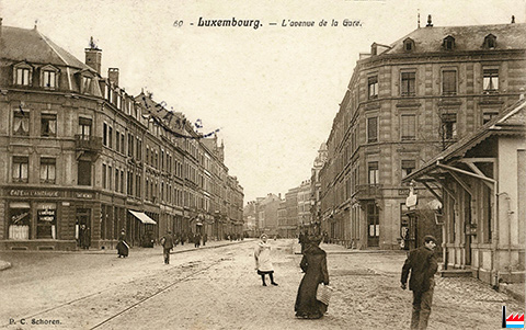 | <=1905 | Café de l'Amérique, coin de l’avenue de la Gare, pour se rendre par Verlorenkost à Pulvermühle vers Scheidhof |