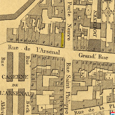 | 1862 | Maison 1 rue de la Porte-Neuve, Luxembourg (Plan de la Ville et de la Forteresse de Luxembourg, dressé par J.B. Liesch, vérificateur-chef de bureau du Cadastre - 1862) |