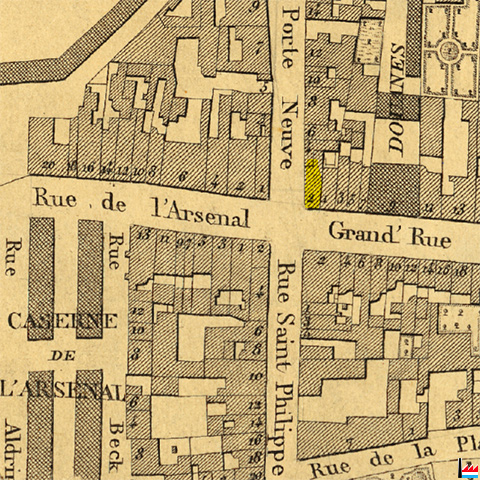 | <=1862 | Maison 2 rue de la Porte-Neuve, Luxembourg (Plan de la Ville et de la Forteresse de Luxembourg, dressé par J.B. Liesch, vérificateur-chef de bureau du Cadastre - 1862) |